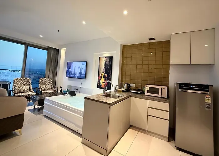 グルガウンでの休暇を楽しむには、Rajender Clay Handicraftから車で10分で、セクター 32から7kmの広々とした78m²のLuxe Jacuzzi Studio Key 2 グルガウンがあります。 寝室1室のアパートからは山の景色を望め、テラスもあります。